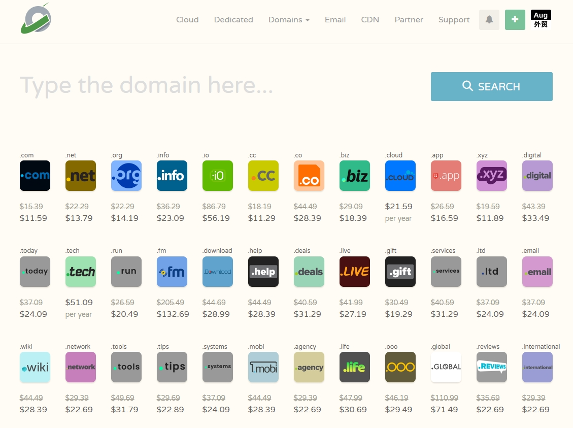 域名就是我们互联网常说的网址,顶级域名。我们拥有域名以后可以做很多东西,例如搭建以自己域名为地址的博客、外贸独立站、域名邮箱、二维码、官方网站等等多种用途。今天站长来教大家如何在CloudCone注册域名。
