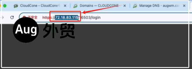 之后,我们打开新的浏览器窗口,去访问你的域名。我这里域名依然是输入 augwm.com (输入www.augwm.com也是可以的,我们之前A记录设置了两条,那就是为了让这2个不同的书写方式都可以正常访问网站)